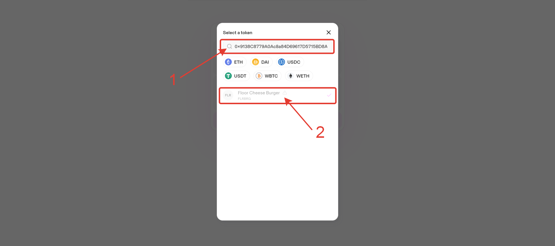 2️⃣ In the opened window, select "Custom Token" and paste the smart contract address: (the same as on Uniswap).