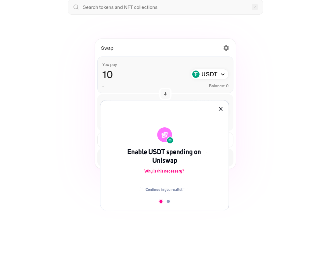 Note: If your wallet has not yet conducted any operations on Uniswap with USDT, after clicking the "Confirm Exchange" button, a pop-up window will appear for us: