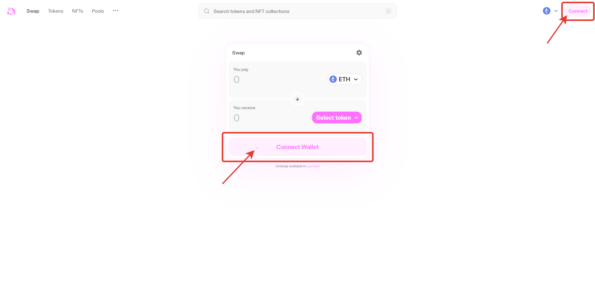link 2️⃣ Connect your MetaMask wallet to the platform by clicking on the button in the top right corner "Connect" or the button in the center "Connect Wallet".